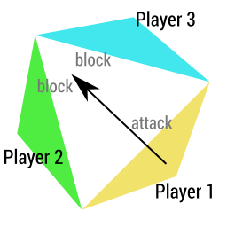 Players attack pairs of opponents together as if they are a team, and those opponents block as if they are on a team, but blocking is declared in turn order. When combat damage occurs, the totem's life to be reduced by the corresponding amounts.